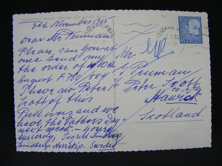 This is the sixth in the album. It’s postmarked the third of November 1965, from Stockholm.