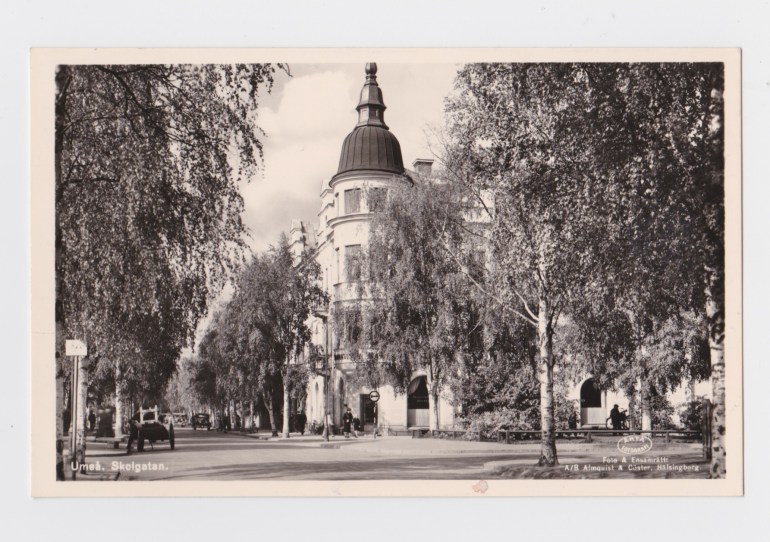 I dropped randomly into the centre of Umeå on Google Maps, and arrived at a restaurant / bar called Plectrum. According to TripAdvisor, it’s a bit average, but it is on the same street as the building on the front of the postcard.