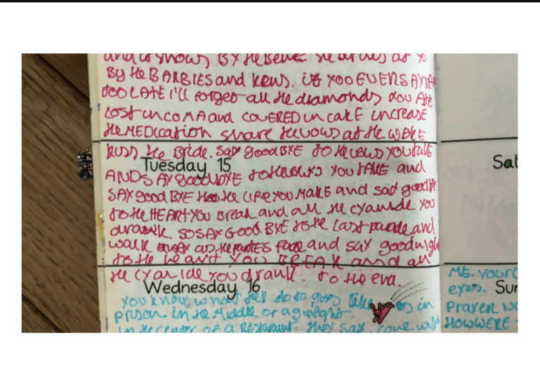 Further to my instagram post about using my 2005 diary in my video work, I’ve had to resort to pooling embarrassing pages from three, because I must have been too distracted by Nu Metal and Punk Rock to write anything much, and waited until 2008 for all the juicy bits. That’s not entirely true, but when I’m trying to tweezer out 41 dates that said things that actually express this time as a whole, it’s easier to use the bits that are funny, and also the bits that I’m still angry about. The difficult bits mean something different now, and I’m finding it freeing to share parts while keeping others hidden. In a private diary, nobody actually really writes the whole truth, anyway. (I don’t think it’s really even possible). Editing my past feels like clarifying it or distilling it, into something that’s maybe more communicative than the whole story would be.
