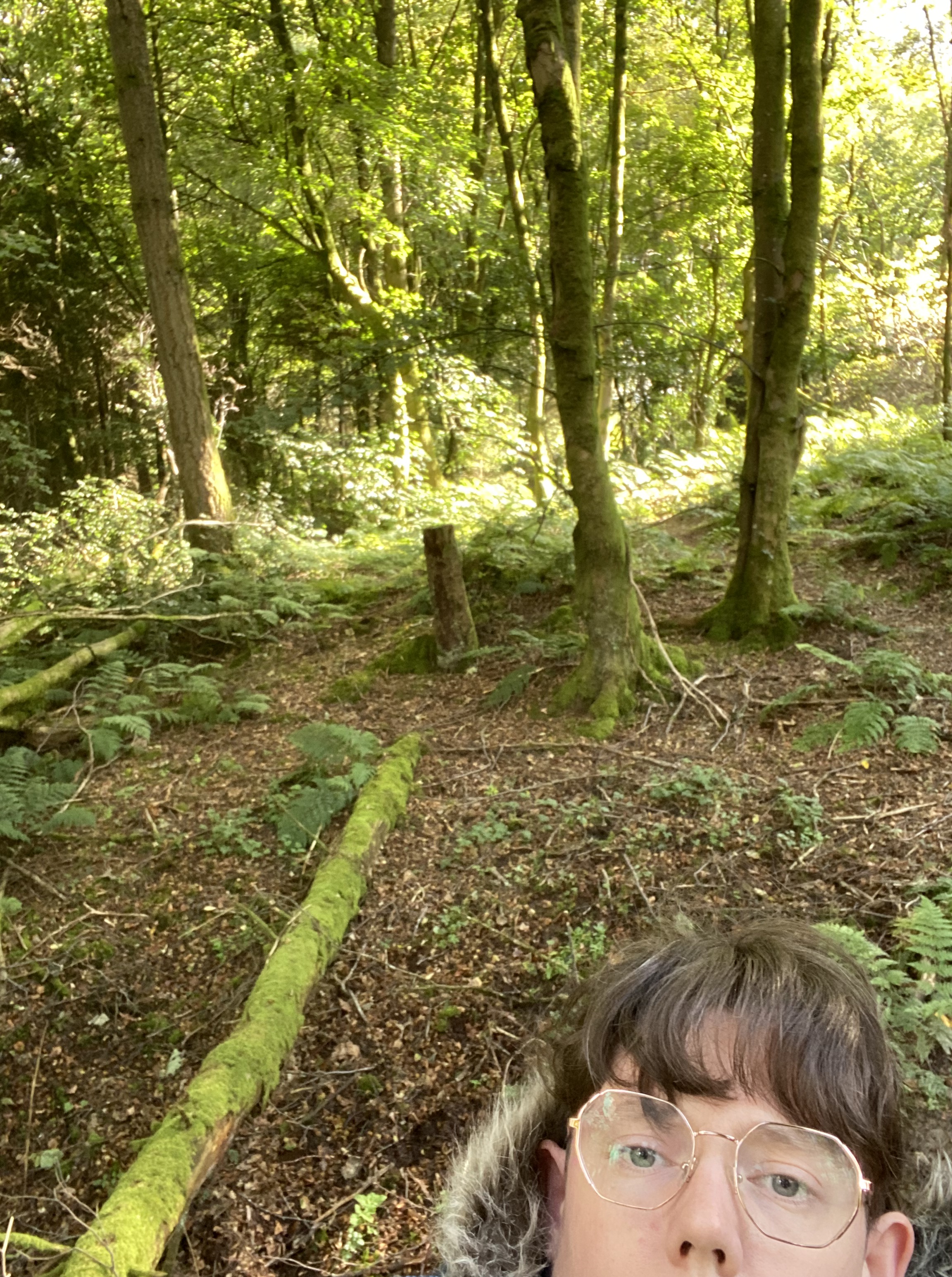 This was in a darker part of the woods, but with a tweak in Affinity photo, I could pull out the detail of the forest floor. Swipe for a terrible selfie taken for planning purposes, as well as the inverted image before I played with the levels.