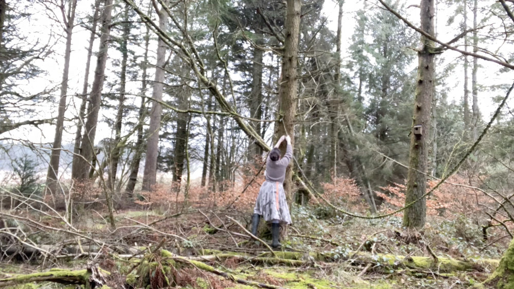 At the end of winter, bobble hats are cast off and spaces navigated. Down, left, up, right, the body moves carefully in space, returns a rope to where it hung before the trees came down. Listen to the birds.